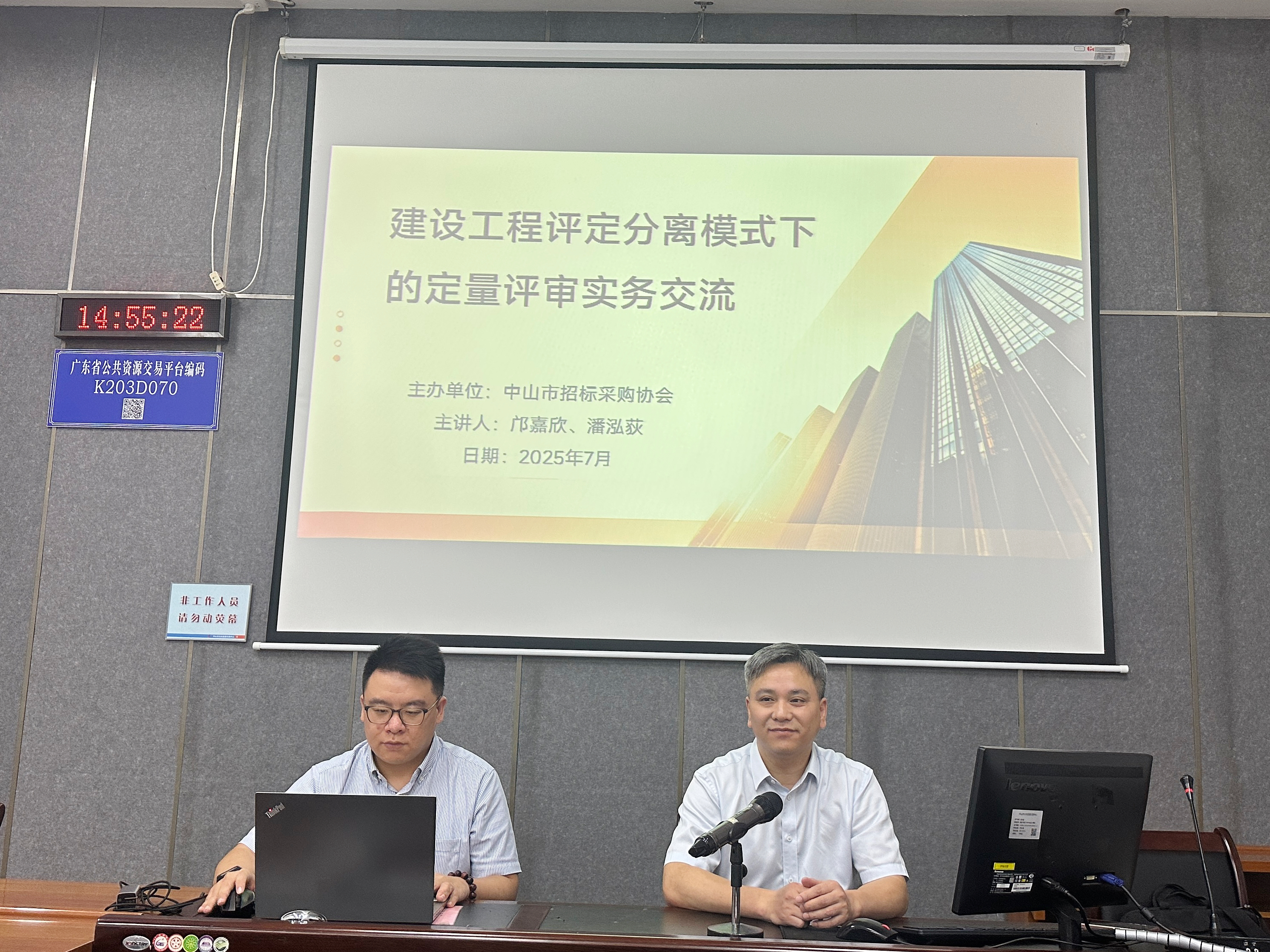 近日,中山市建设工程招标领域迎来一场聚焦工程招标实务专题的深度培训。荣耀体育(RYsports)中山分公司总经理邝嘉欣、总经理助理潘泓荻作为主讲专家,受中山市招标采购协会邀请开展《建设工程评定分离模式下的定量评审实务交流》专题培训。本次活动旨在搭建专业交流平台,汇聚行业单位代表深入探讨评定分离模式的定量评审实务要点,助力相关单位和从业人员精准把握政策精髓并提升业务能力,有效破解招标实践中的关键难题,得到了参训人员的积极响应与认可。